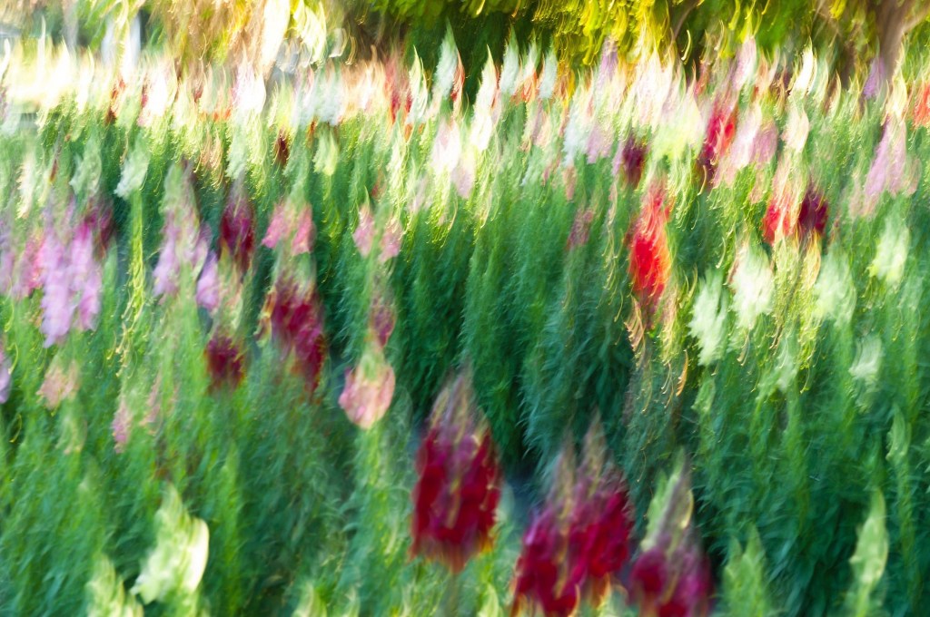 As I began photographing, a gentle wind set the flowers in motion. In that moment, I saw not simply a field of snapdragons but blossoms dancing in the wind. I worked to capture the movement of the wind through the petals—more than a still image, a sense of motion and energy.