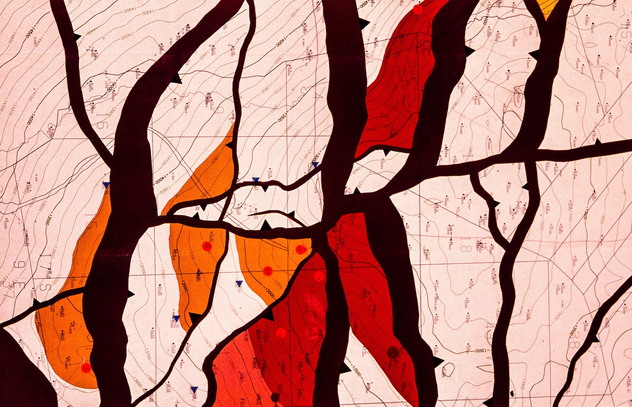 This image is a sonar mapping image of the floor of the Gulf of Mexico identifying were there are voids in the earth, where there is crude oil and where there is natural gas.